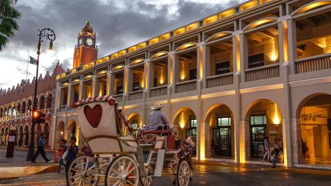 Mérida, la animada capital del estado de Yucatán en México, tiene una rica herencia maya y colonial. El punto central de la ciudad es la Plaza de la Independencia, que tiene a sus costados la Catedral de Mérida, similar a una fortaleza, y la Iglesia de la Tercera Orden, de caliza blanca. Ambas iglesias de la era colonial se construyeron con antigüedades de los antiguos templos mayas. La Casa de Montejo, una mansión del siglo XVI, es un sitio icónico de la arquitectura plateresca colonial.